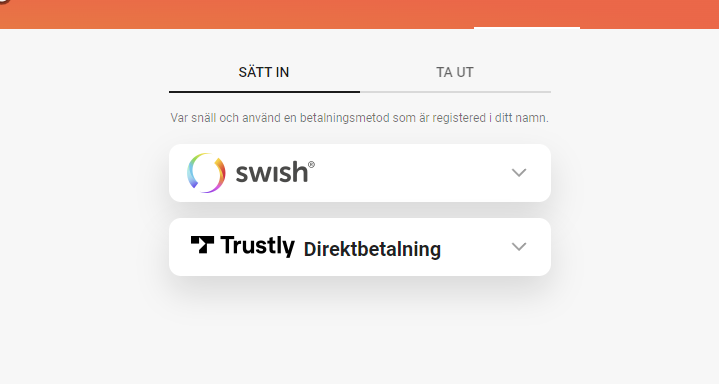 - Insättningsmetoder: Trustly, Swish och flera andra alternativ